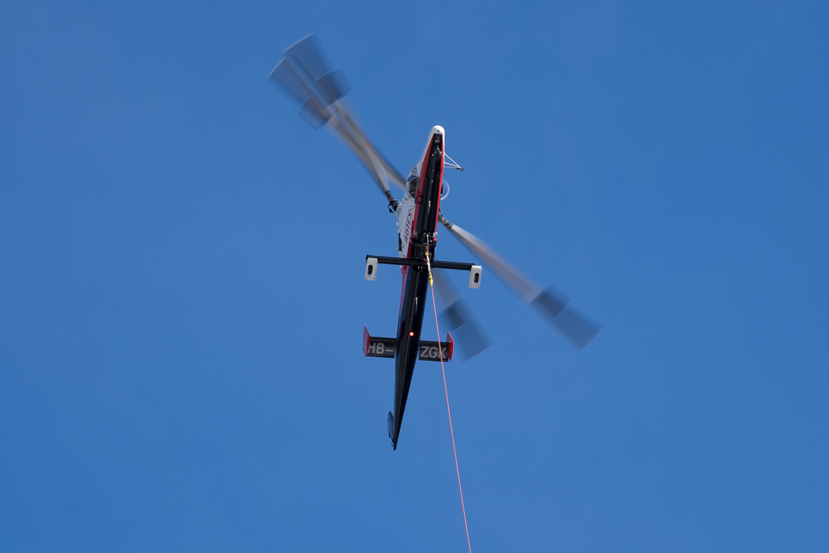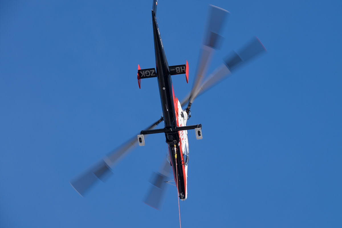 Es ist immer wieder erstaunlich, vor allem wenn man von unten schaut, welche Blattspiele die beiden kreisenden Rotoren ergeben. Einmal nahezu kreuzweise, dann wieder parallel und ein anderes Mal wieder anders. Die folgenden Bilder zeigen ein paar Varianten.