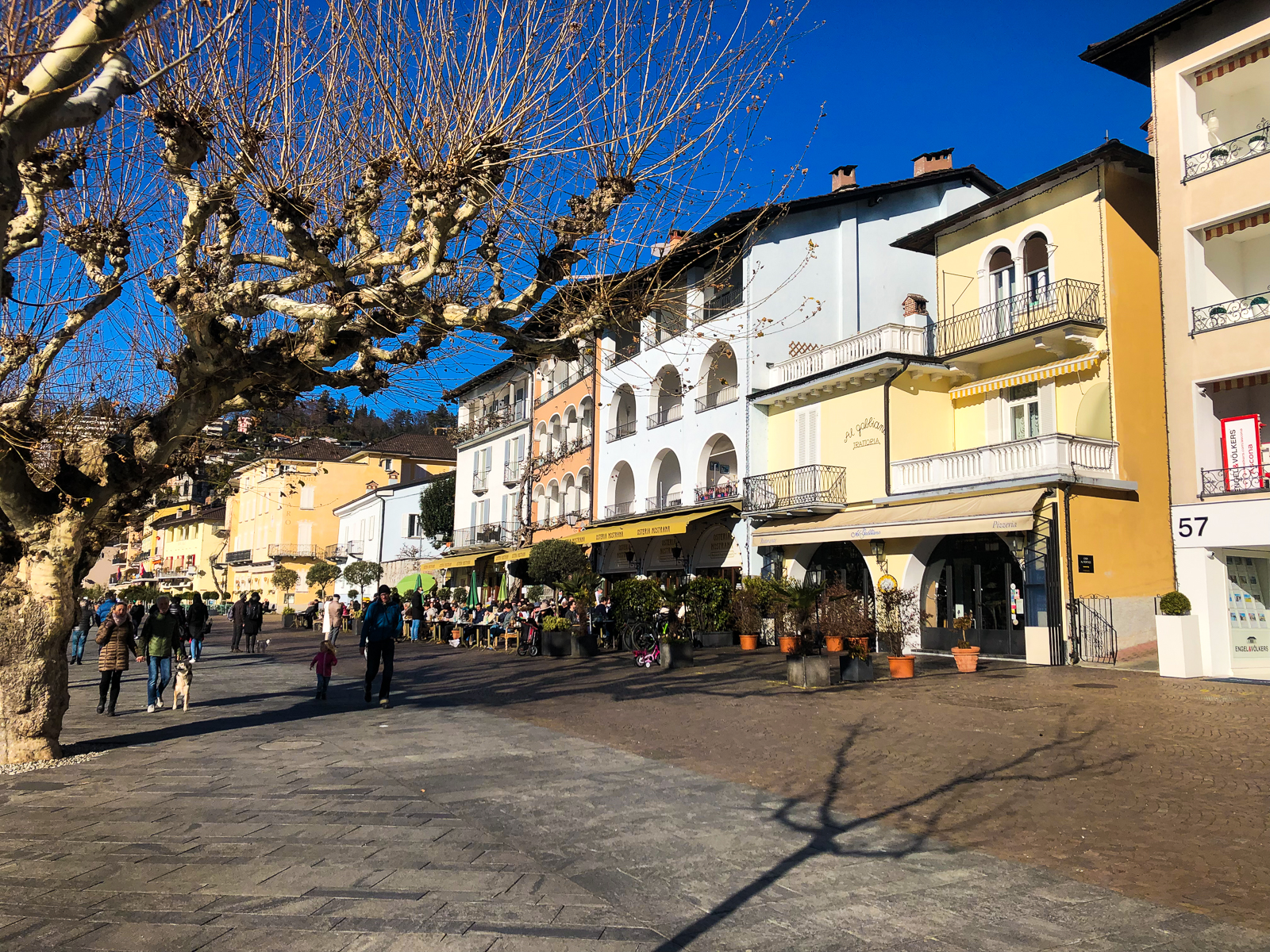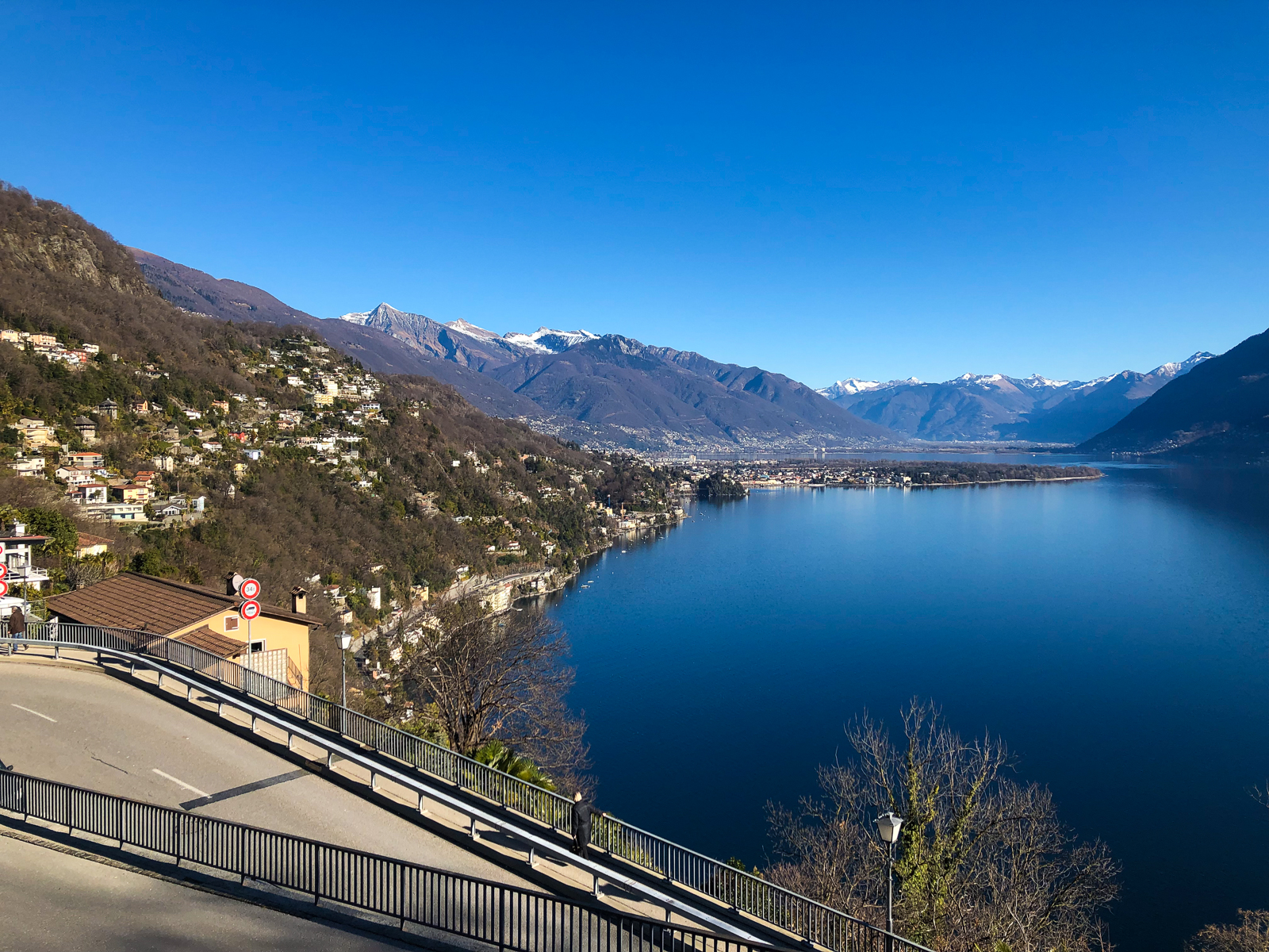 Nach dem feinen und reichhaltigen Frühstück packte ich meine sieben Sachen zusammen, bezahlte das Hotel und deponierte mein Gepäck in der Hotellobby. Anschliessend ging es nach Ascona und dort genehmigte ich mir einen ersten Capuccino. Die Fahrt ging in der Folge Richtung Brissago und wieder zurück. Auf einem Höhenweg genoss man eine gewaltige Aussicht auf die Insel Brissago und den See.