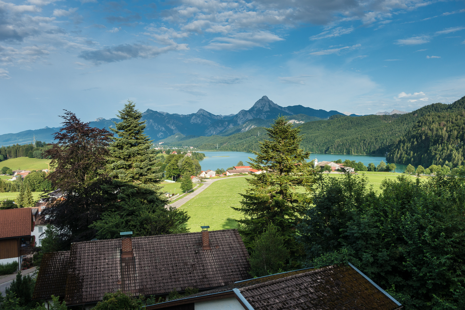 Während ich diesen Beitrag schreibe, zieht am heutigen Abend etwa zum dritten Mal ein schönes Sommergewitter über die Hotelterrasse und die nahe Umgebung. Ich sitze geschützt unter dem Vordach und schaue über den Weissensee und die verschwommenen Konturen der nahen Berge. Es prasselt herrlich darnieder. Dass ich überhaupt hier in Füssen sitze, ist der heutigen Fahrt von Mayrhofen nach hierher zu verdanken. Kurzerhand fuhr ich über den Fernpass Richtung Deutschland. Am heutigen Sonntag herrschte dichter Ausflugsverkehr, vor allem in südlicher Richtung. Vielleicht werde ich morgen noch das Schloss Neuschwanstein anschauen, mal schauen. Danach trete ich endgültig den Heimweg an.
