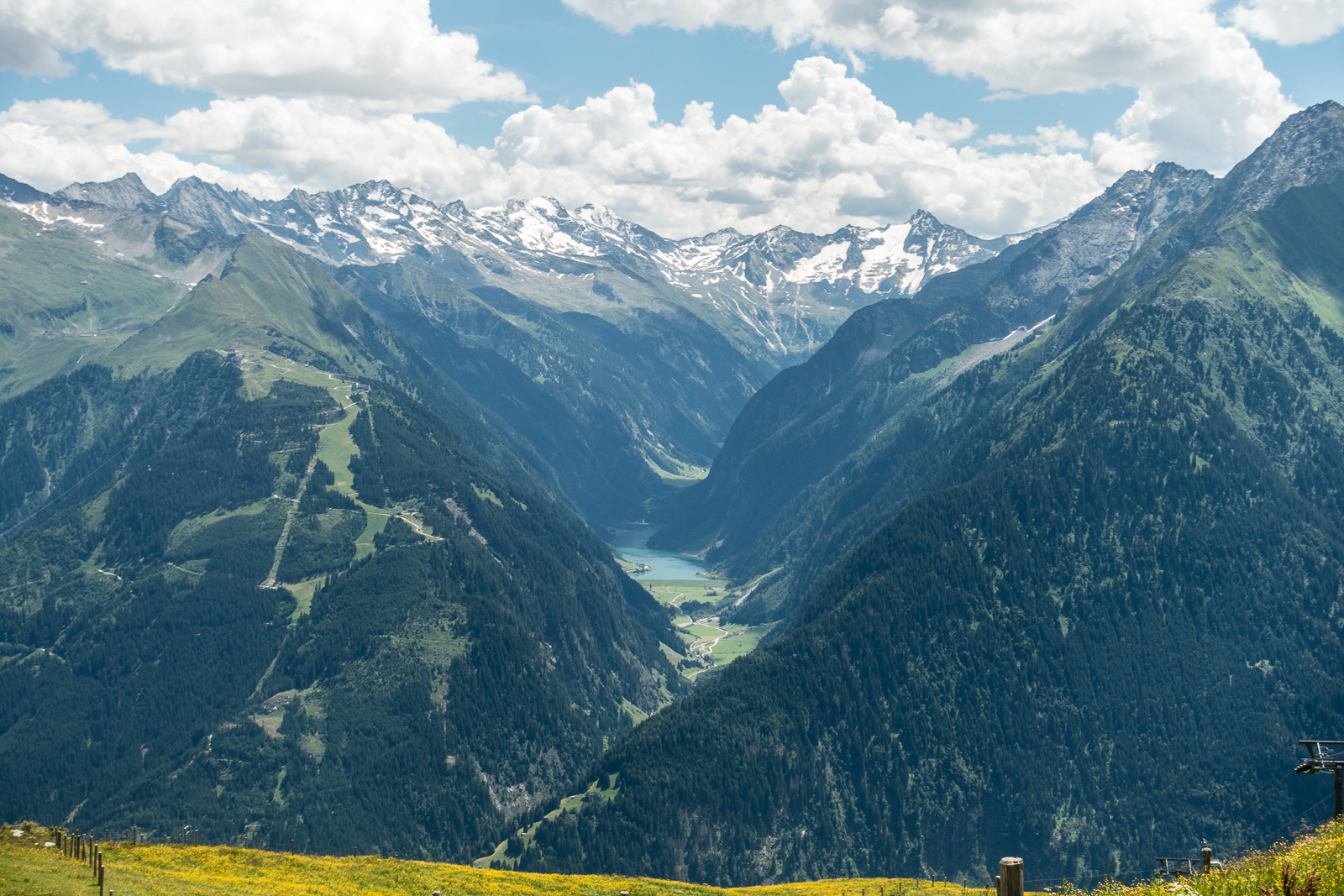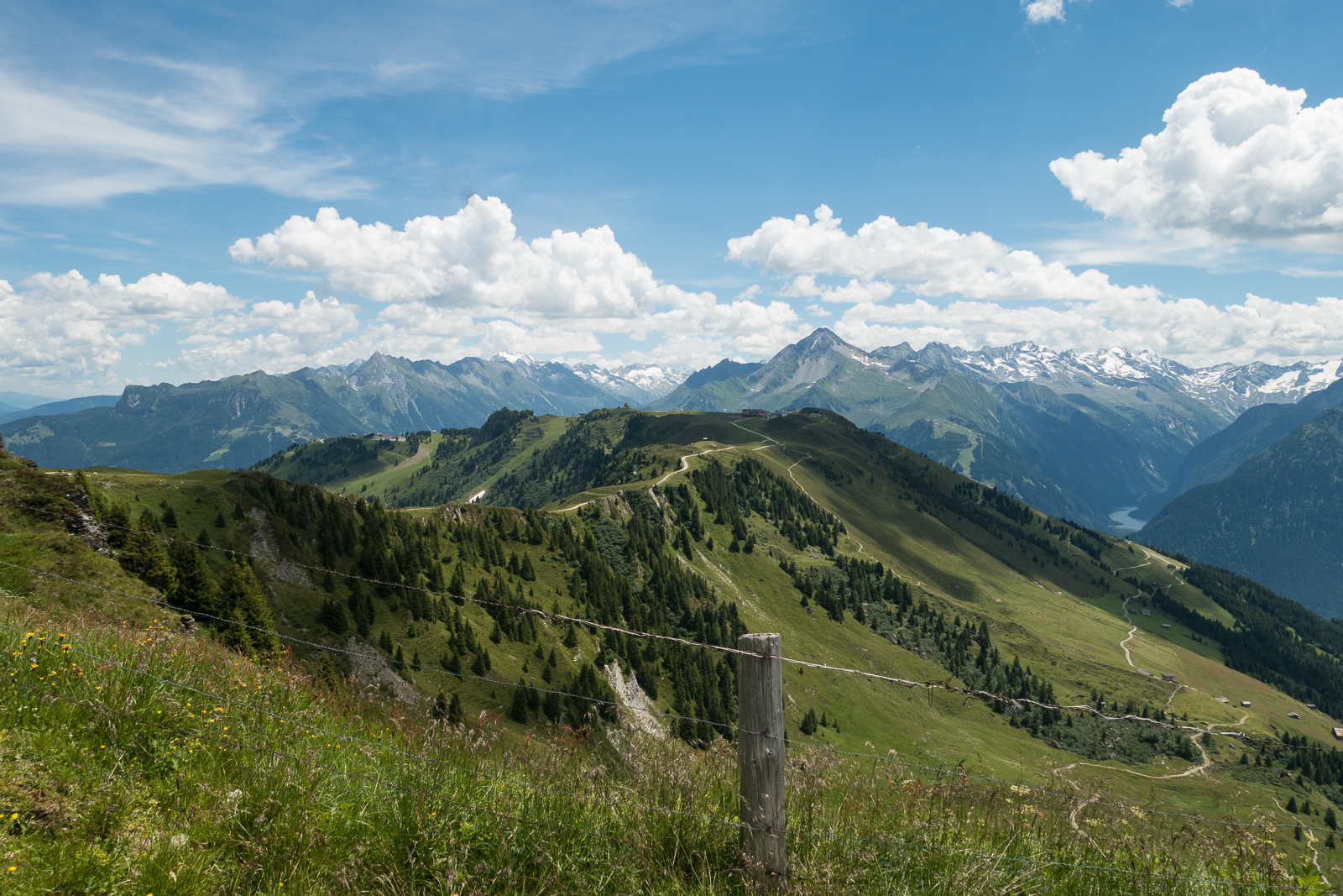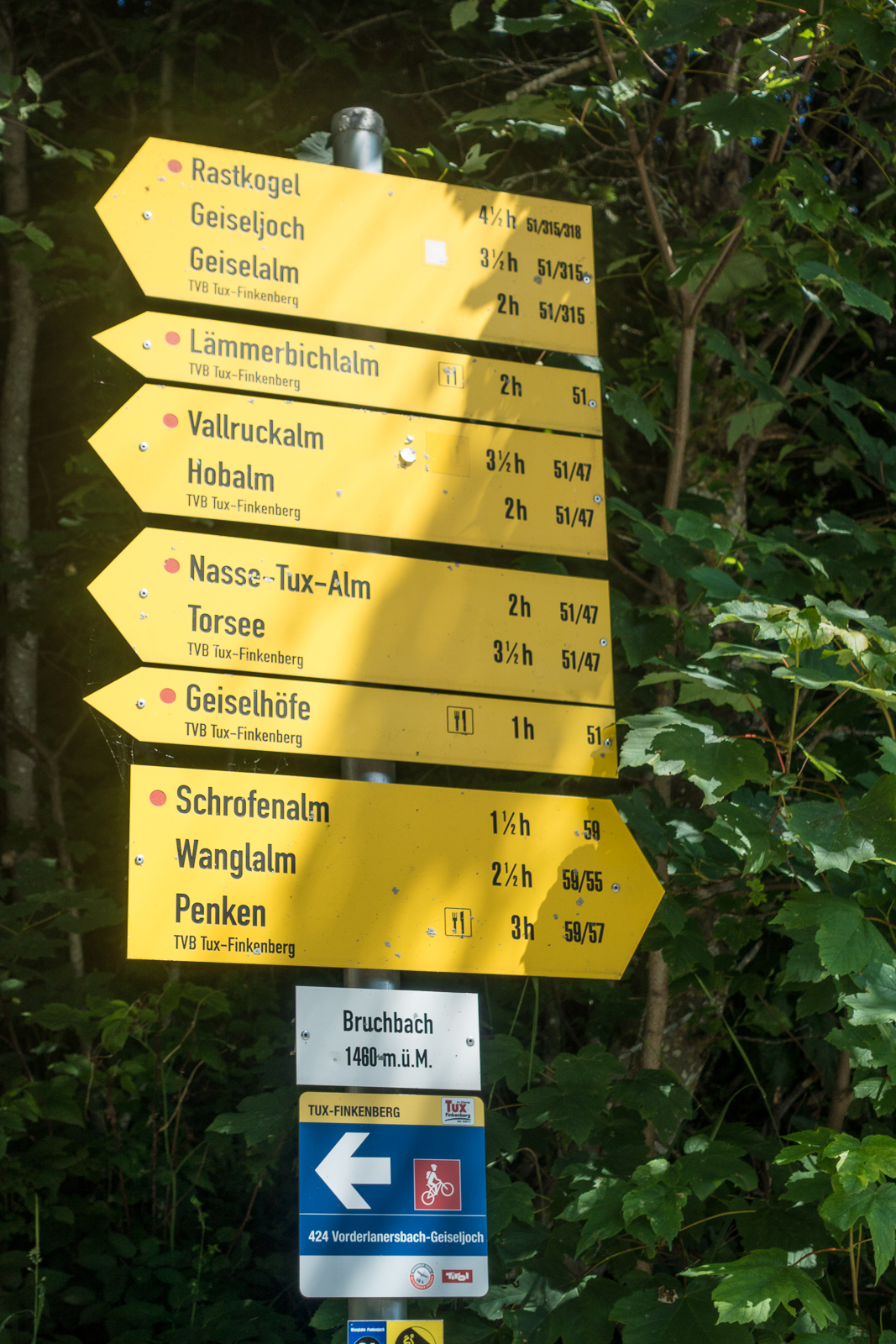 Die heutige Tour via Wanglalm zum Penkenjoch hatte es in sich. Mit 42 Kilometern, über 1'500 Höhenmetern und dem höchsten Punkt auf 2'120 m.ü.M. war es keine leichte Strecke. Leider war die Strecke ins Tuxertal bis Finkenberg recht stark befahren und vor allem alles auf Asphalt. Teilweise ging es durch Galerien, wo das Licht üblicherweise nicht sehr gut ist. Anschliessend ging es weiter bergauf - die über 1500 HM müssen ja irgendwo herkommen - grosse Abschnitte auf Forststrassen und später dann ein recht rauher schmaler Fahrweg. Von unten war nicht zu sehen, wo der Weg hinführte. Jedoch kam eine Kehre um die andere dazu und auf dem GPS konnte man erahnen, dass noch lange nicht Feierabend ist. Doch auch diese Anstrengung war bald geschafft und von nun an ging es nur noch hinunter. Via Penkenjoch nach Mayrhofen zurück. Dazwischen natürlich eine Einkehr in einer der schönen Almbeizen.