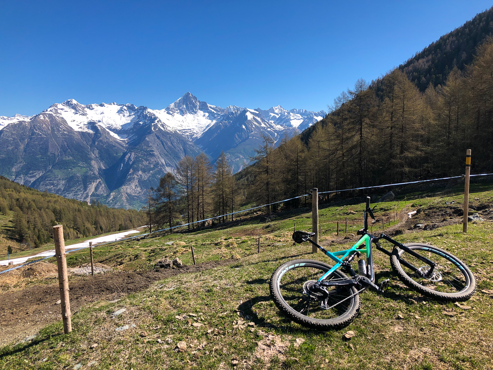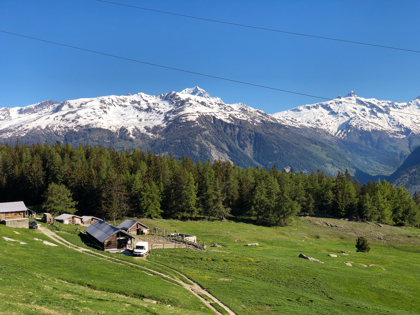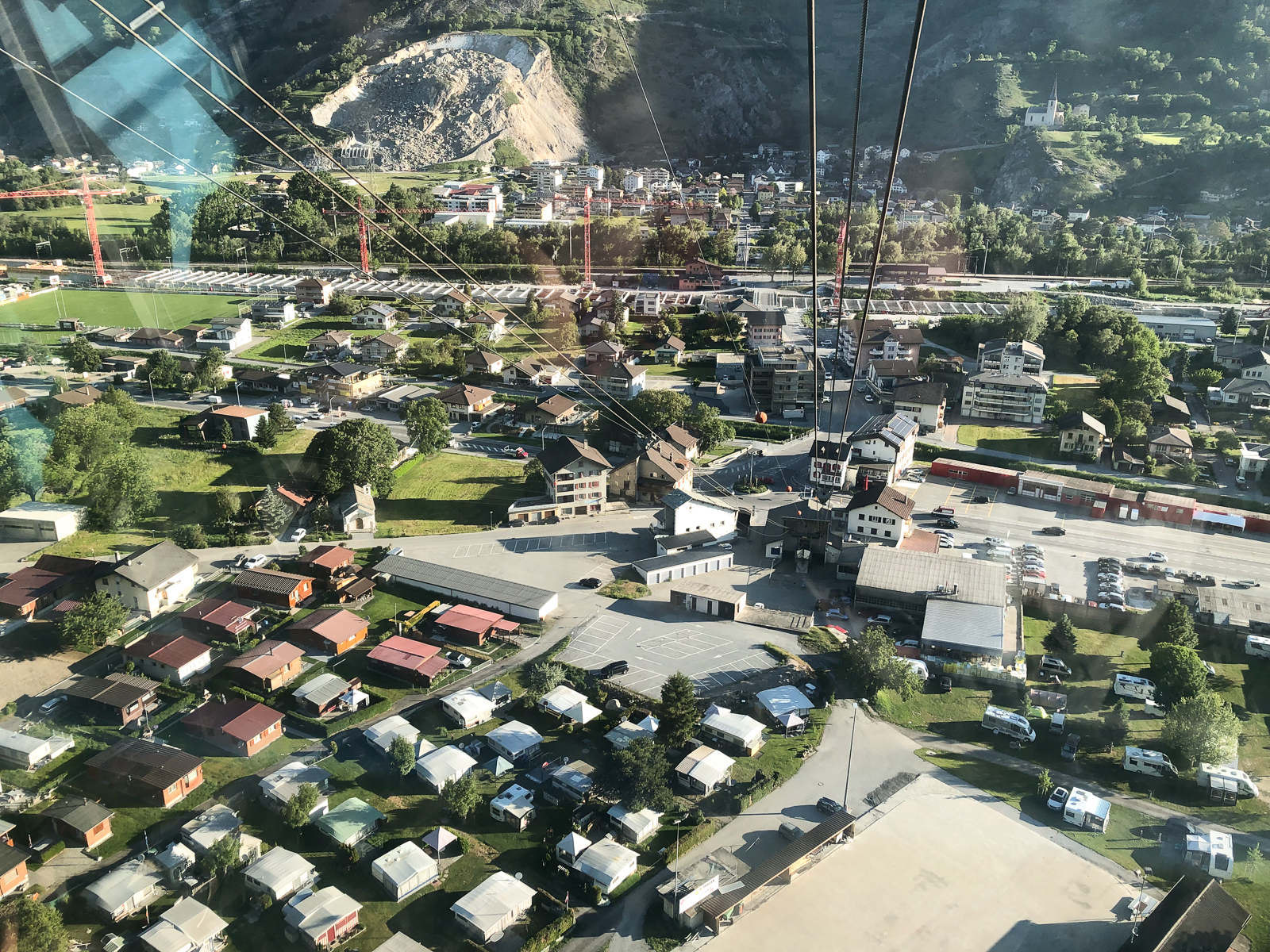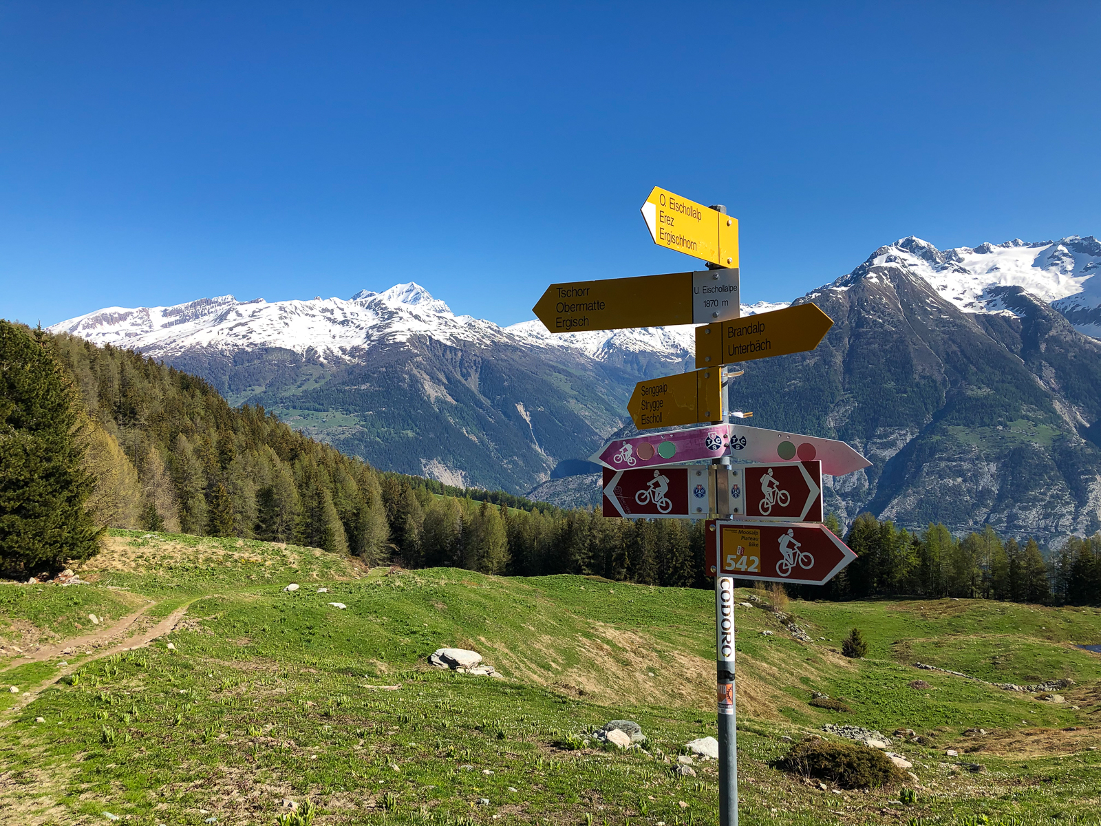 Zeitig ging es heute morgen aus den Federn. Ich wollte die Gondel kurz vor halb Acht ereichen. Direkt neben dem Campingplatz ging es dann mit der Seilbahn nach Unterbäch. Von dort startete eine rund fünfzig Kilometer lange Tour mit letztlich knapp zweitausend Höhenmetern. Diese bot Landschaftlich wie auch fahrtechnisch alles was man sich wünschen kann. Knackige Aufstiege auf befestigten Strassen, aber auch spannende und steile Abfahrten auf Singletrails und über saftige Wiesen.
