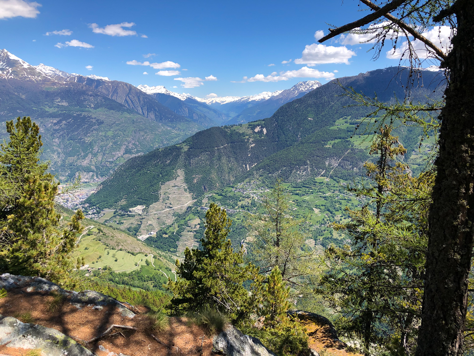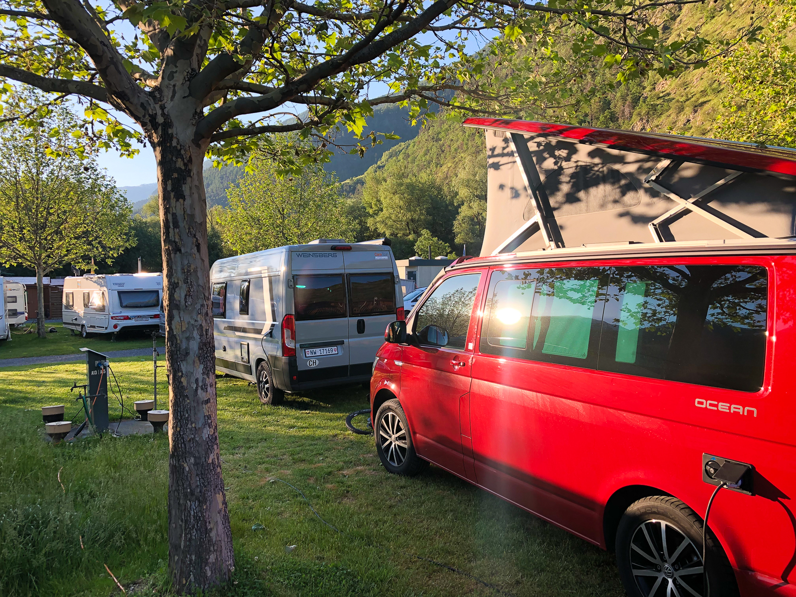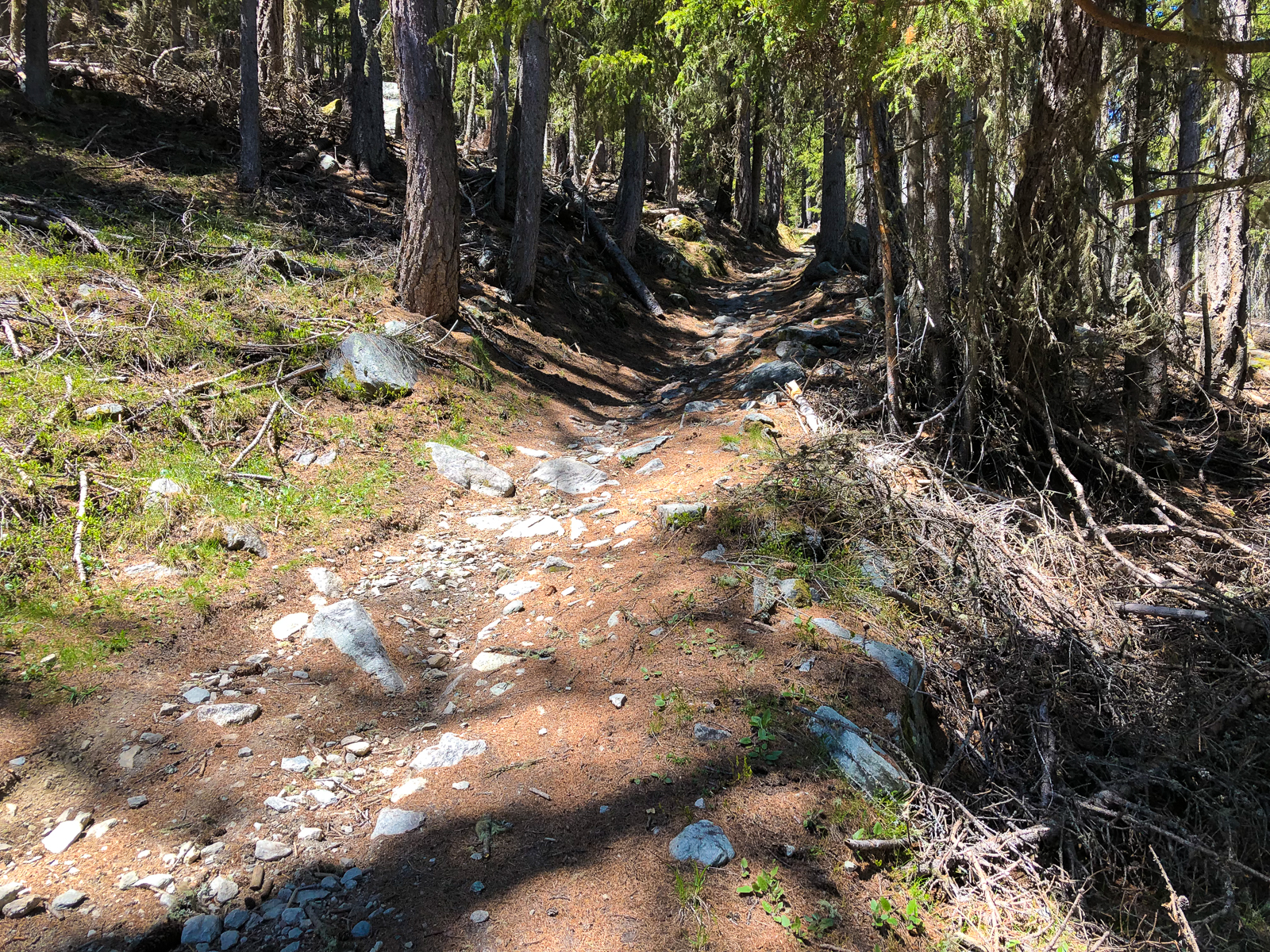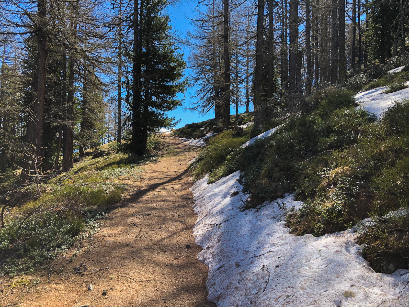 Zeitig ging es heute morgen aus den Federn. Ich wollte die Gondel kurz vor halb Acht ereichen. Direkt neben dem Campingplatz ging es dann mit der Seilbahn nach Unterbäch. Von dort startete eine rund fünfzig Kilometer lange Tour mit letztlich knapp zweitausend Höhenmetern. Diese bot Landschaftlich wie auch fahrtechnisch alles was man sich wünschen kann. Knackige Aufstiege auf befestigten Strassen, aber auch spannende und steile Abfahrten auf Singletrails und über saftige Wiesen.