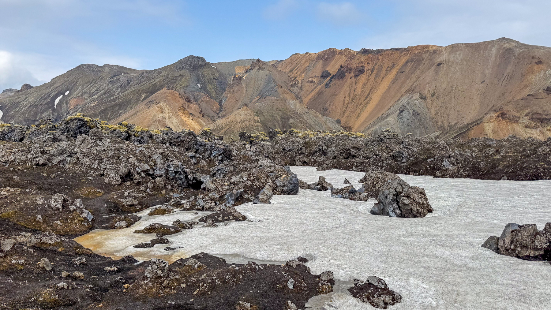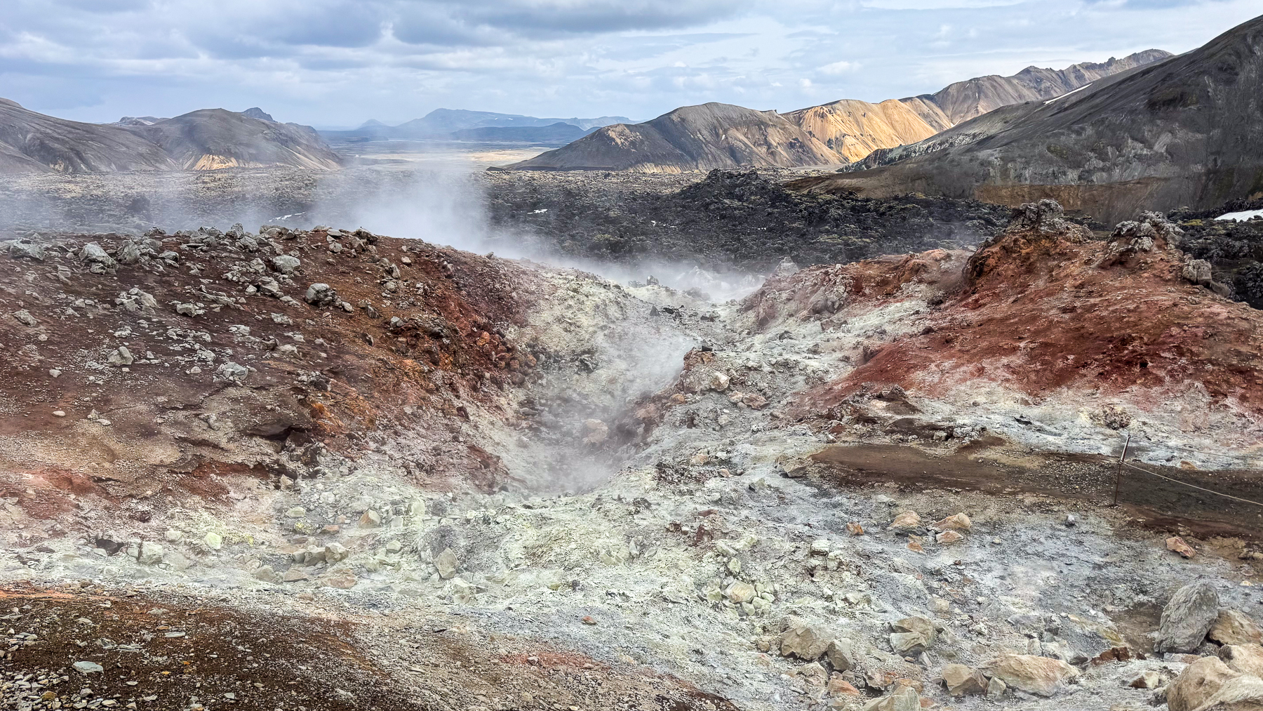 Landmannalaugar and the Valley of Tears, so hiess die heutige Rundreise. Anfänglich war das Wetter noch eher auf der schlechten Seite, doch je länger wir gegen Osten fuhren wurde das Wetter freundlicher. Die Szenerie war ein Augenschmaus vom Besonderen und die erdkundliche Geschichte konnte man nahezu auf Schritt und Tritt verfolgen. Das abschliessende Bad in den heissen Quellen war noch das Tüpfelchen auf dem I.