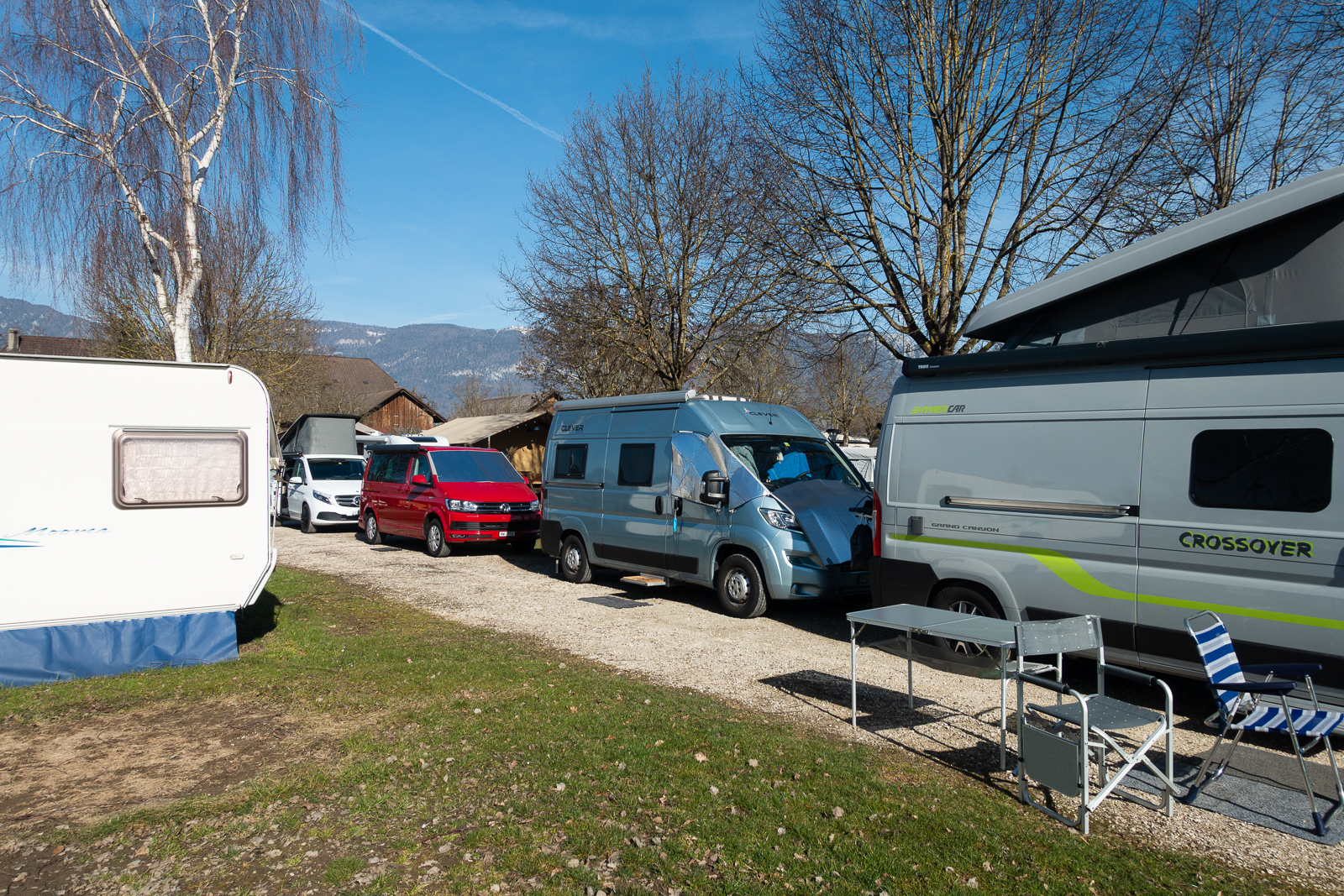 Die Wetterprognose sehr gut und die Temperaturen frühlingshaft - also nichts wie los und ab nach Solothurn. Im Nu gebucht und am Freitagabend hingefahren. Die Platzzuweisung sah nur Stellplätze auf befestigten Wegen vor und am Samstag füllte sich der Platz dann zusehends bis alles besetzt war.