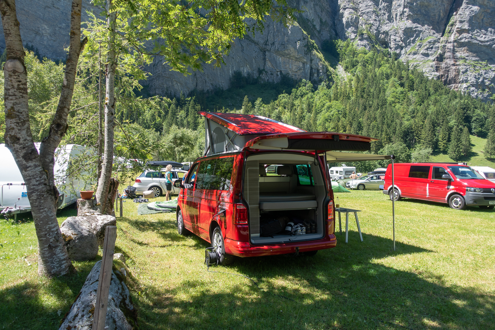 Eine neue Dimension im Camperlife ist angebrochen und auch ein Traum in Erfüllung gegangen. Am Samstag konnte ich meinen heiss ersehnten T6 Ocean in Empfang nehmen und nach ein paar vorbereitenden Arbeiten - wie Gasflasche einsetzen, Geschirr und Besteck einräumen, Bedienungsanleitung lesen usw. - ging es dann am Sonntag auf den ersten Einsatz nach Stechelberg. Dort angekommen hiess es Strom anschliessen, Sonnenstore ausfahren sowie Tisch und Stuhl aufstellen. Im Nu was das erledigt und ich konnte den schönen Platz geniessen und das Treiben beobachten.