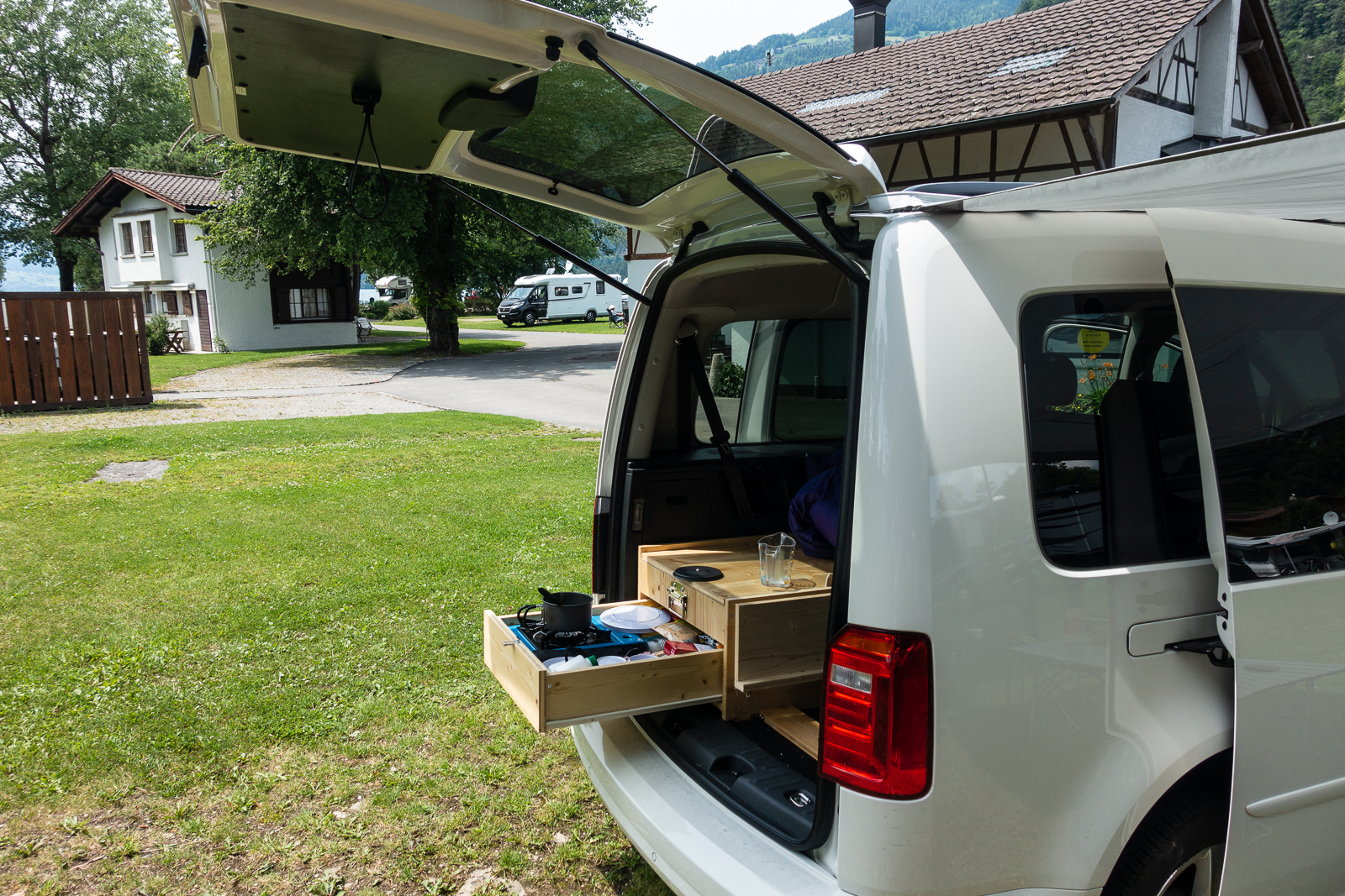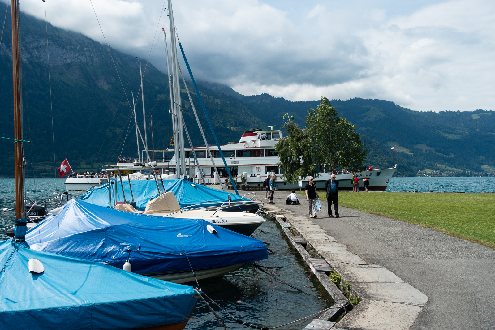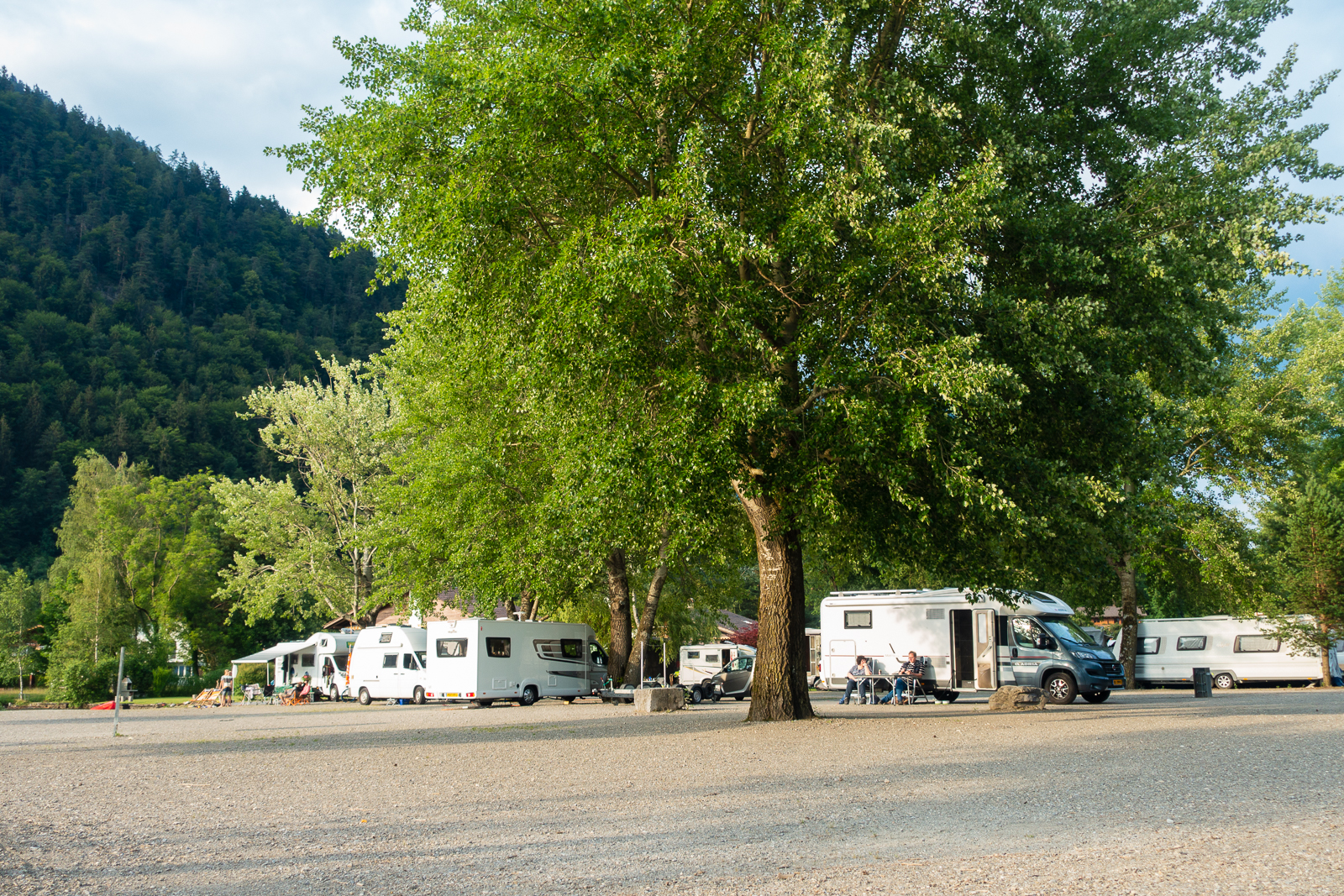 Nachdem meine Wunschdestination - Thun - ausgebucht war, fuhr ich alternativ nach Unterseen. Diesmal war ich in der Manor Farm zu Gast. Eine grosszügig angelegte Anlage mit verschiedenen Platzangeboten. Abhängig davon ist auch der Preis. So kostet ein Standplatz an guter, ruhiger Lage so um die vierundzwanzig Franken. Dagegen ist dann ein Platz direkt am See etwa zehn Franken teurer. Auch die sanitären Anlagen sind in sehr gutem Zustand. Leider gibt es keine Camping Beiz, nur ein gediegenes Restaurant gehört zur Anlage.